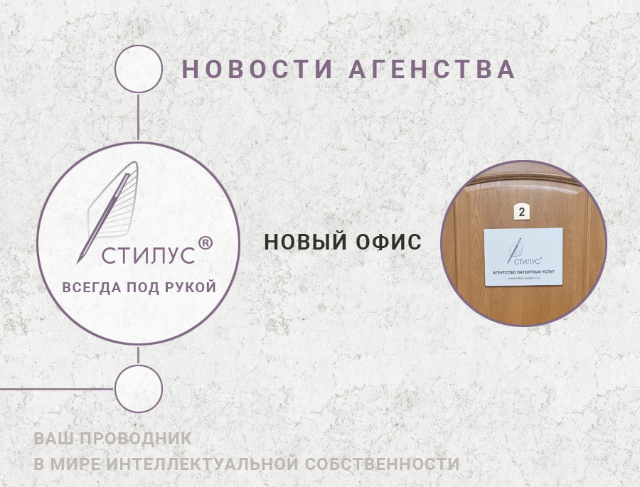 Агентство патентных услуг "СТИЛУС" переехало в новый офис по адресу:
